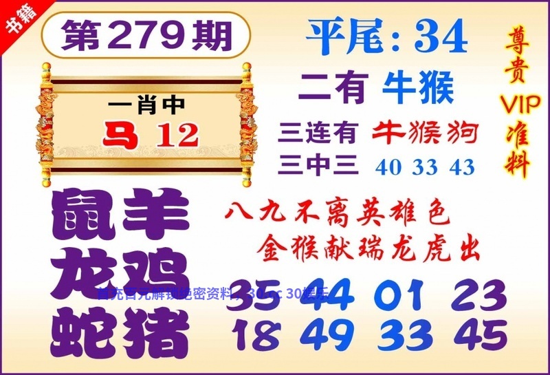 279期:七肖【猴鸡狗兔虎鼠马】开:兔27准 |